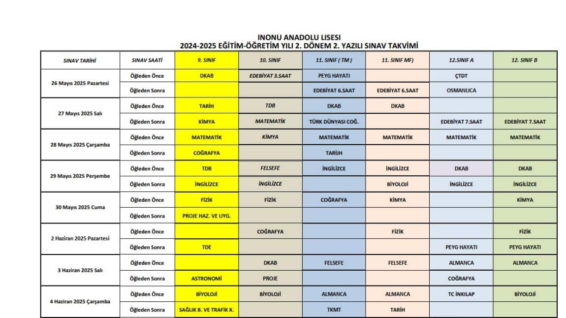 2.Dönem - 1.Sınav Tarihleri Belirlendi